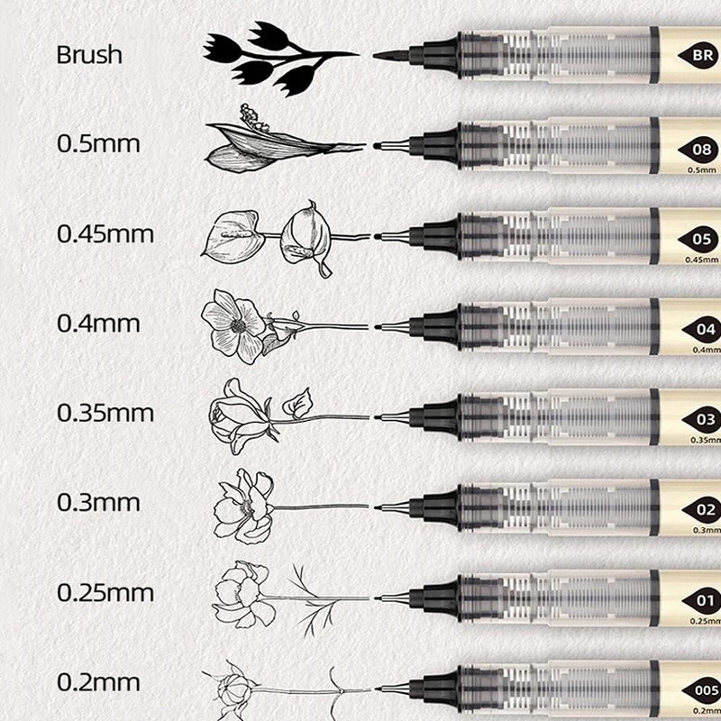 علامات رسم الحبر المقاومة للماء ، قلم فرشاة ، رسم رسم ، كاريكاتير ، أقلام خط الصباغ ، مستلزمات القرطاسية المدرسية ، سعة كبيرة ، 8 لكل مجموعة