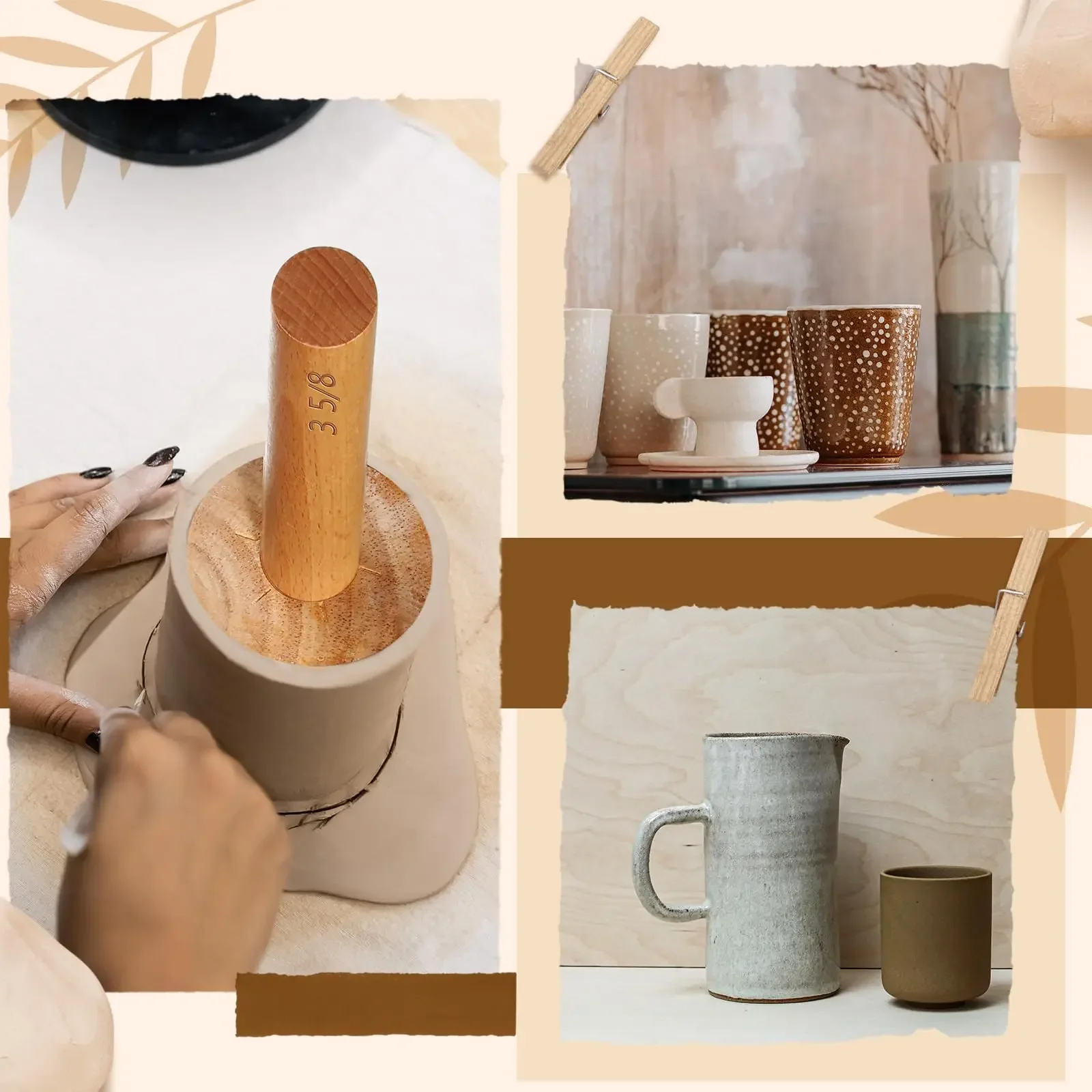قوالب فخار احترافية صُممت خصيصًا لتلبية احتياجات فناني وصنّاع الفخار، تجمع بين الجودة، الدقة، وسهولة الاستخدام. مصنوع من الخشب الطبيعي المطاطي، ليمنحك شكلاً متناسقًا ومريحًا للكوب، ويُستخدم بسهولة مع مختلف أنواع الطين.